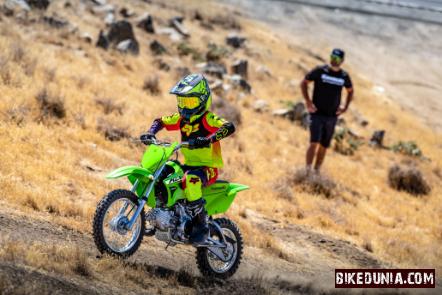 The 2024 Kawasaki KLX 110R L is a compact off-road motorcycle designed for younger riders and beginners. It has a 112cc air-cooled, single-cylinder engine paired with a 4-speed transmission. The bike has a manual clutch, giving riders more control. With a higher seat height than the standard version and longer suspension travel, it’s more suited for those seeking a slightly more challenging ride on trails.