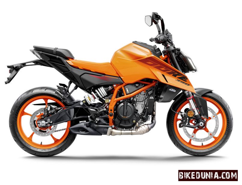 The KTM 390 Duke, powered by a 398.63cc single-cylinder engine, delivers a punchy 46 PS at 8500 RPM and 39 Nm of torque at 6500 RPM. Featuring a split-trellis frame, fully adjustable WP APEX suspension, and cornering ABS, the 390 Duke offers sharp handling and precise control. With its 5-inch TFT display, quickshifter plus, and modern electronics package, this lightweight naked bike is built for aggressive, spirited riding.