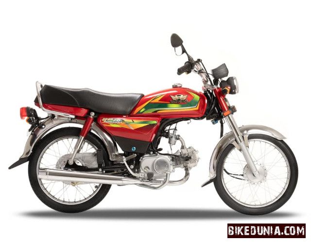 The Road Prince Passion Plus 70cc is a compact motorcycle designed for urban commuting with its 78cc, 4-stroke engine. Its kick-start mechanism ensures simplicity and reliability, while the wet multiple clutch system facilitates smooth gear transitions. The four-speed transmission enhances control, making it suitable for varied riding conditions. A chain drivetrain ensures efficient power delivery to the rear wheel, providing steady performance for everyday use.