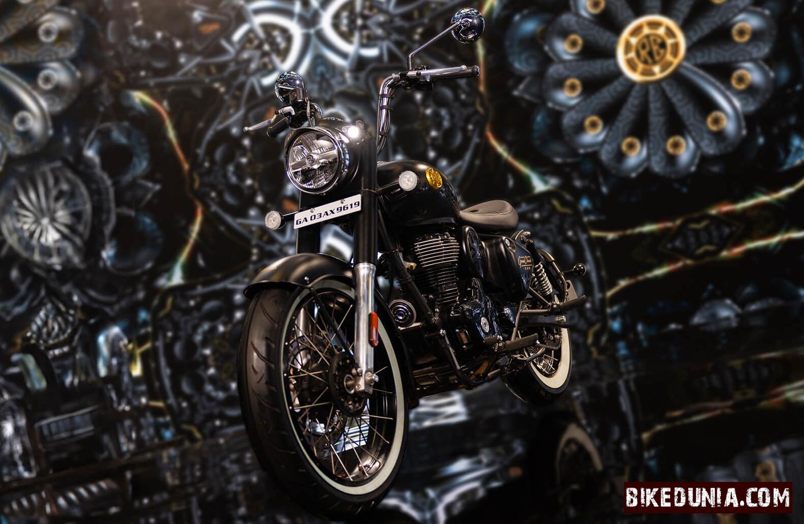 The Royal Enfield Goan Classic 350 offers a 349cc single-cylinder engine with 20.2 Ps power and 27 Nm torque, paired with an electronic fuel injection system and air-oil cooling for smooth performance. It features dual-channel ABS with a 300mm front disc and 270mm rear disc for strong braking. The bike has a 750mm seat height, 13-litre fuel tank, and 36.2 km/l mileage, making it practical for varied rides. Its twin-downtube spine frame, adjustable rear suspension, and wire-spoke wheels ensure durability and comfort. With LED lighting, a maintenance-free battery, and tubeless tyres, it combines modern tech with classic design.