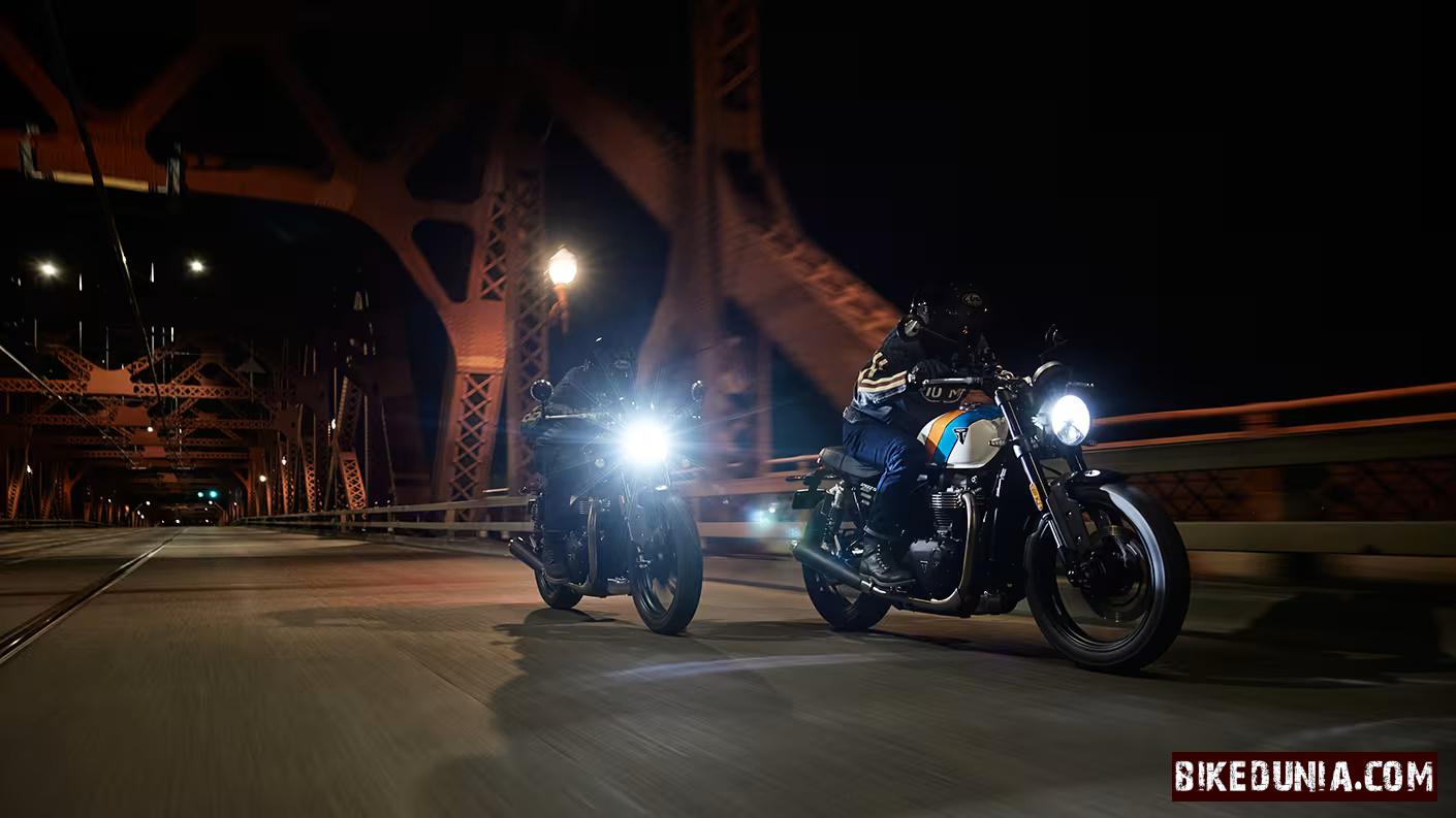 The Triumph Speed Twin 900 2025 runs on a 900 cc liquid-cooled parallel twin engine with an 8-valve SOHC configuration and a 270° firing order. This setup generates a maximum power of 65 Ps at 7500 rpm, ensuring smooth performance across various riding conditions. The refined firing order enhances the bike's distinctive character and provides balanced torque delivery. Its modern engineering combines efficient cooling and precise power output for optimal road dynamics. The motorcycle showcases a balance between style and functionality, appealing to those who value both performance and aesthetics.