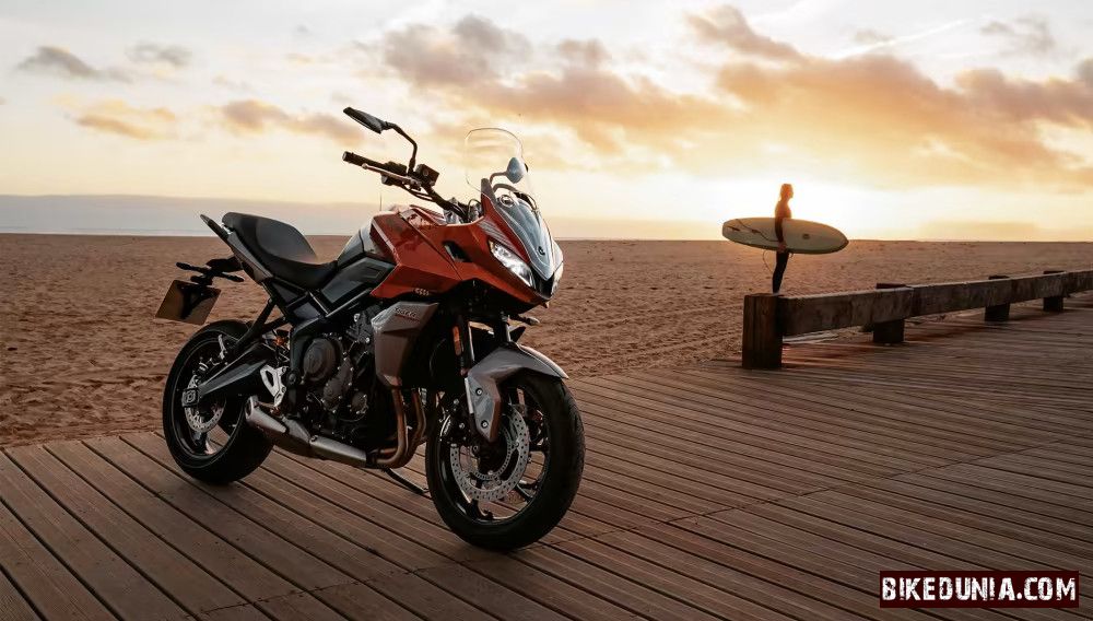 The Triumph Tiger Sport 660 has a 660cc inline 3-cylinder engine producing 81 hp and 64 Nm of torque. Its upright riding position, paired with a 17-liter fuel tank, allows for long-distance comfort, while the dual-disc front brakes ensure confident stopping power.